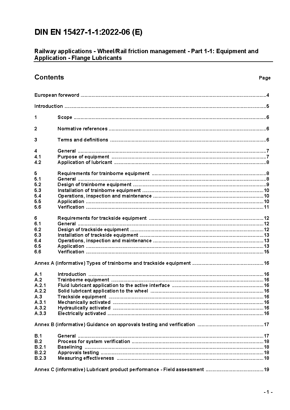 Railway applications - Wheel/Rail friction management - Part 1-1: Equipment and Application - Flange Lubricants; German and English version prEN 15427-1-1:2020