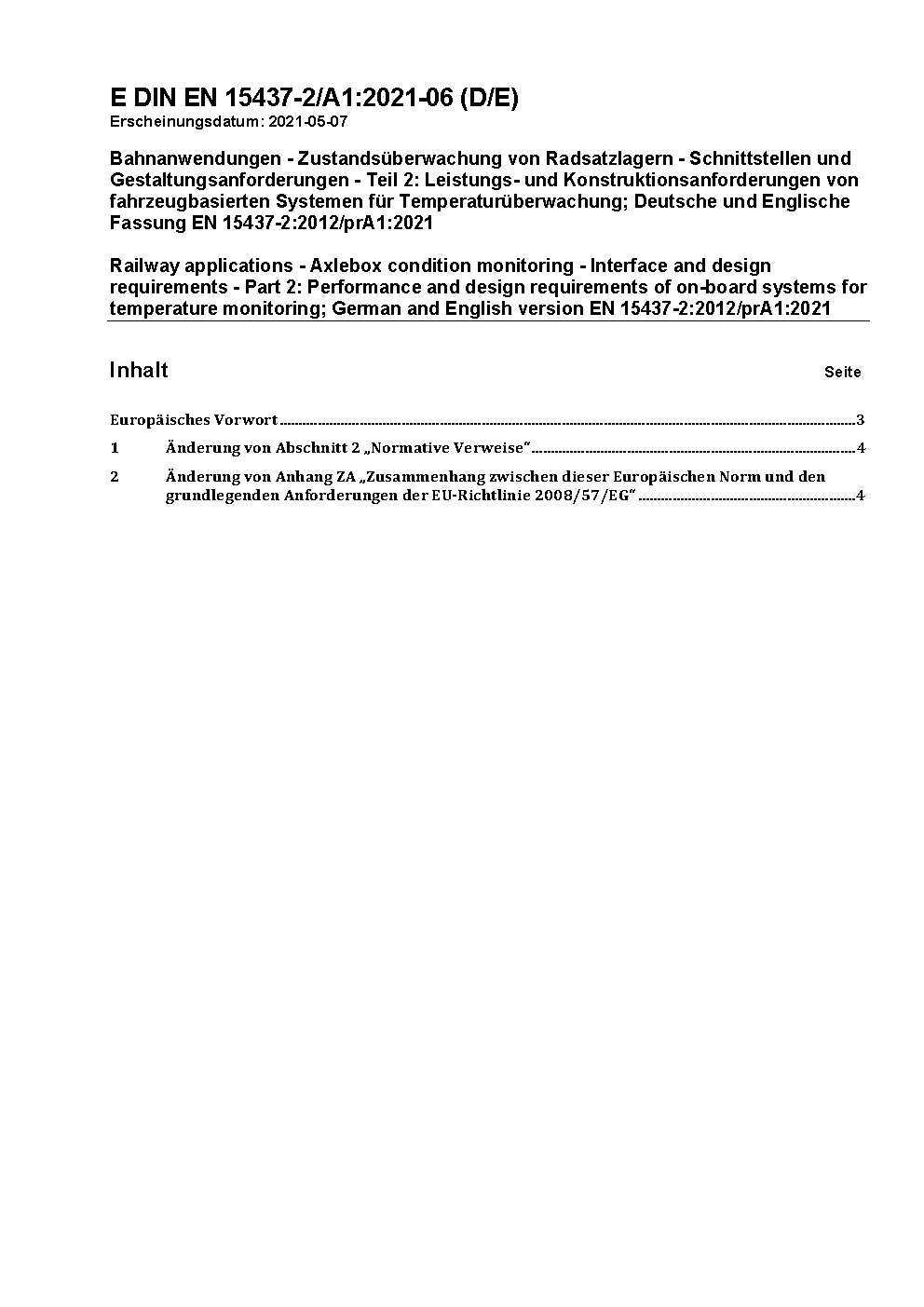 Bahnanwendungen - Zustandsüberwachung von Radsatzlagern - Leistungsanforderungen - Teil 2: Fahrzeugbasierte Systeme für Temperaturüberwachung; Deutsche Fassung prEN 15437-2:2010