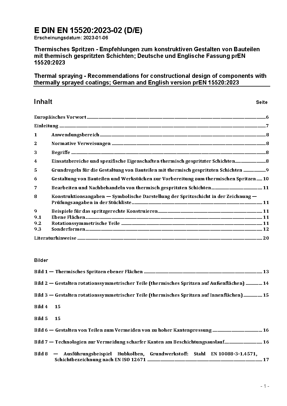 Thermisches Spritzen - Empfehlungen zum konstruktiven Gestalten von Bauteilen mit thermisch gespritzten Schichten; Deutsche Fassung EN 15520:2007