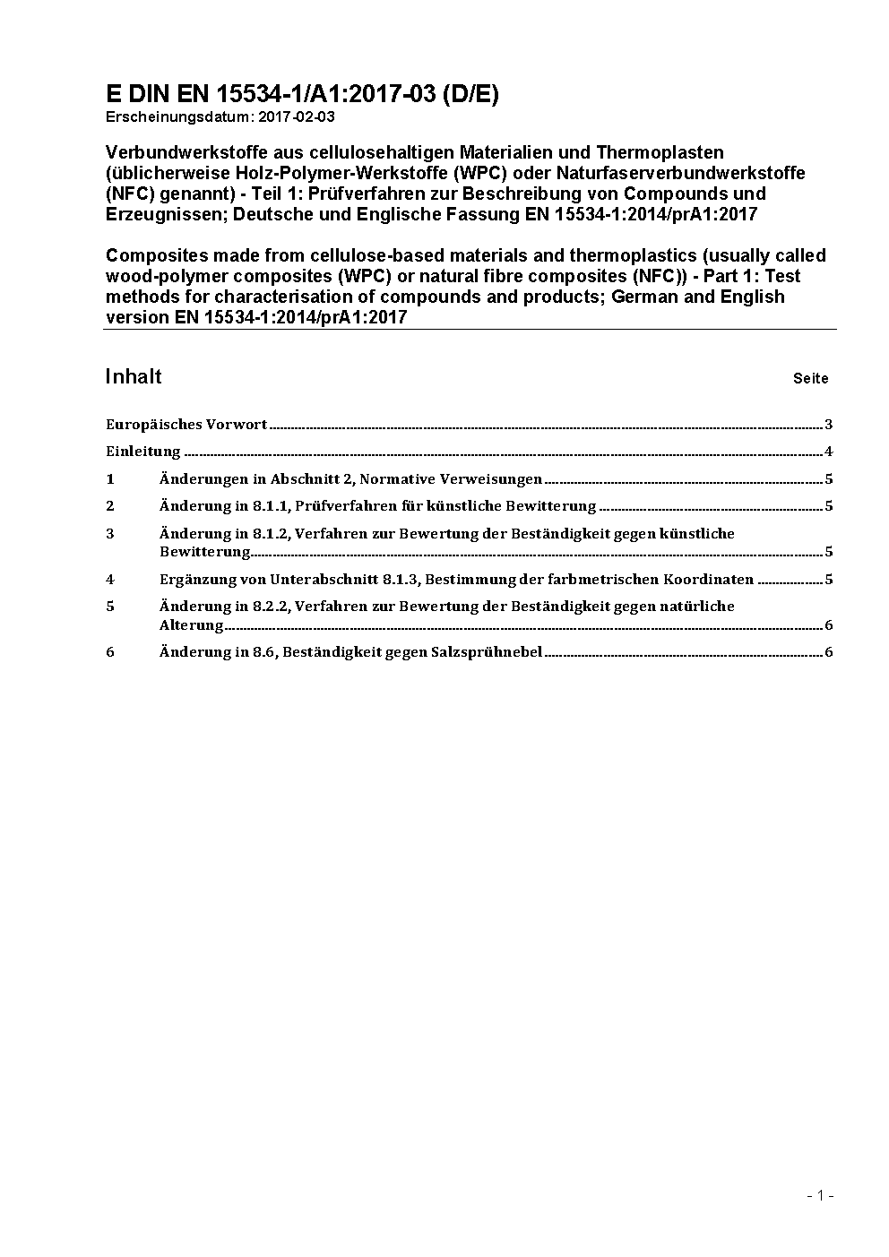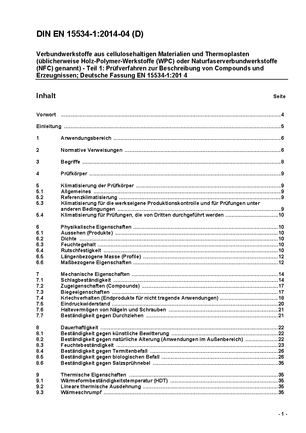 Verbundwerkstoffe aus Cellulose haltigen Materialien und Thermoplasten (üblicherweise Holz-Polymer-Werkstoffe (WPC) oder natürliche Faserverbundwerkstoffe (NFC) genannt) - Teil 1: Prüfverfahren zur Beschreibung von Formmassen und Erzeugnissen; Deutsche Fassung prEN 15534-1:2012
