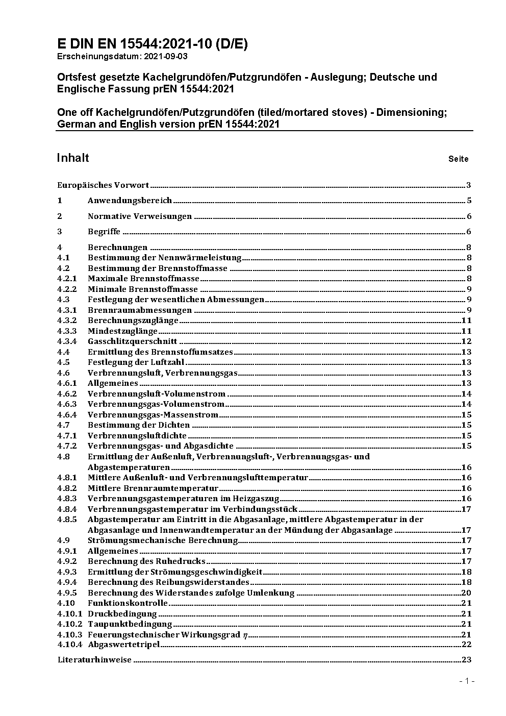 One off Kachelgrundöfen/Putzgrundöfen (tiled/mortared stoves) - Dimensioning; German version prEN 15544:2008