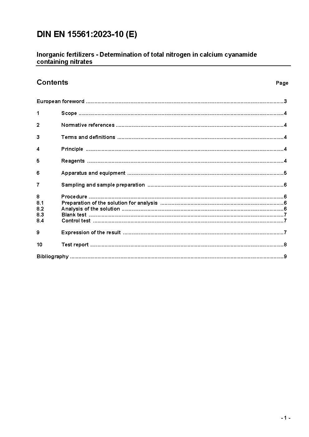 Inorganic fertilizers - Determination of total nitrogen in calcium cyanamide containing nitrates; German version EN 15561:2023