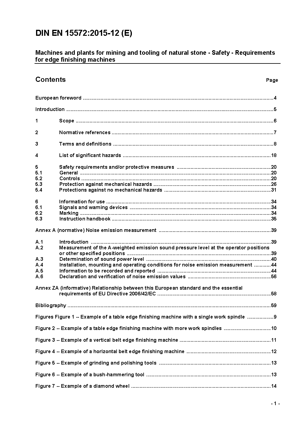 Maschinen und Anlagen zur Gewinnung und Bearbeitung von Naturstein - Sicherheit - Anforderungen für Kantenschleifmaschinen; Deutsche Fassung prEN 15572:2006