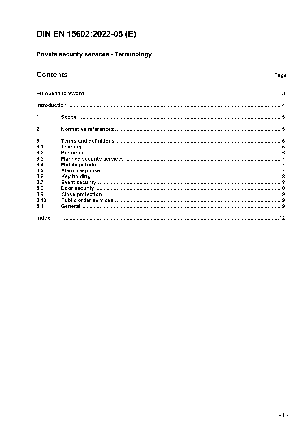 Sicherheitsdienstleister/Sicherungsdienstleister - Begriffe; Deutsche Fassung EN 15602:2022