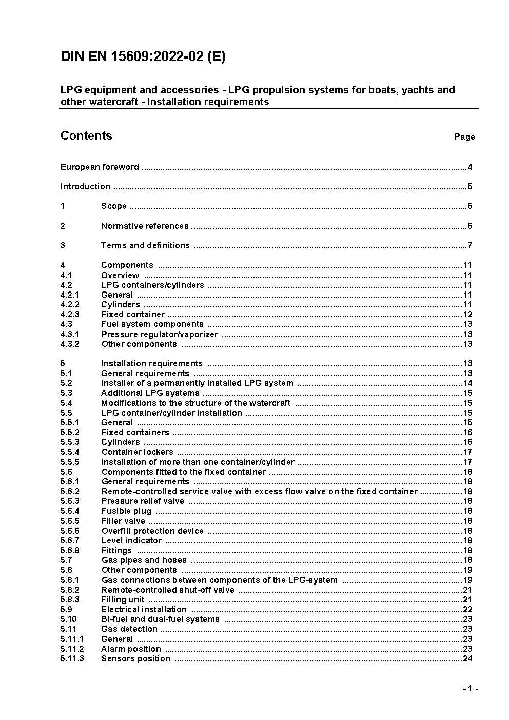 LPG equipment and accessories - LPG propulsion systems for boats, yachts and other watercraft - Installation requirements; German version EN 15609:2021