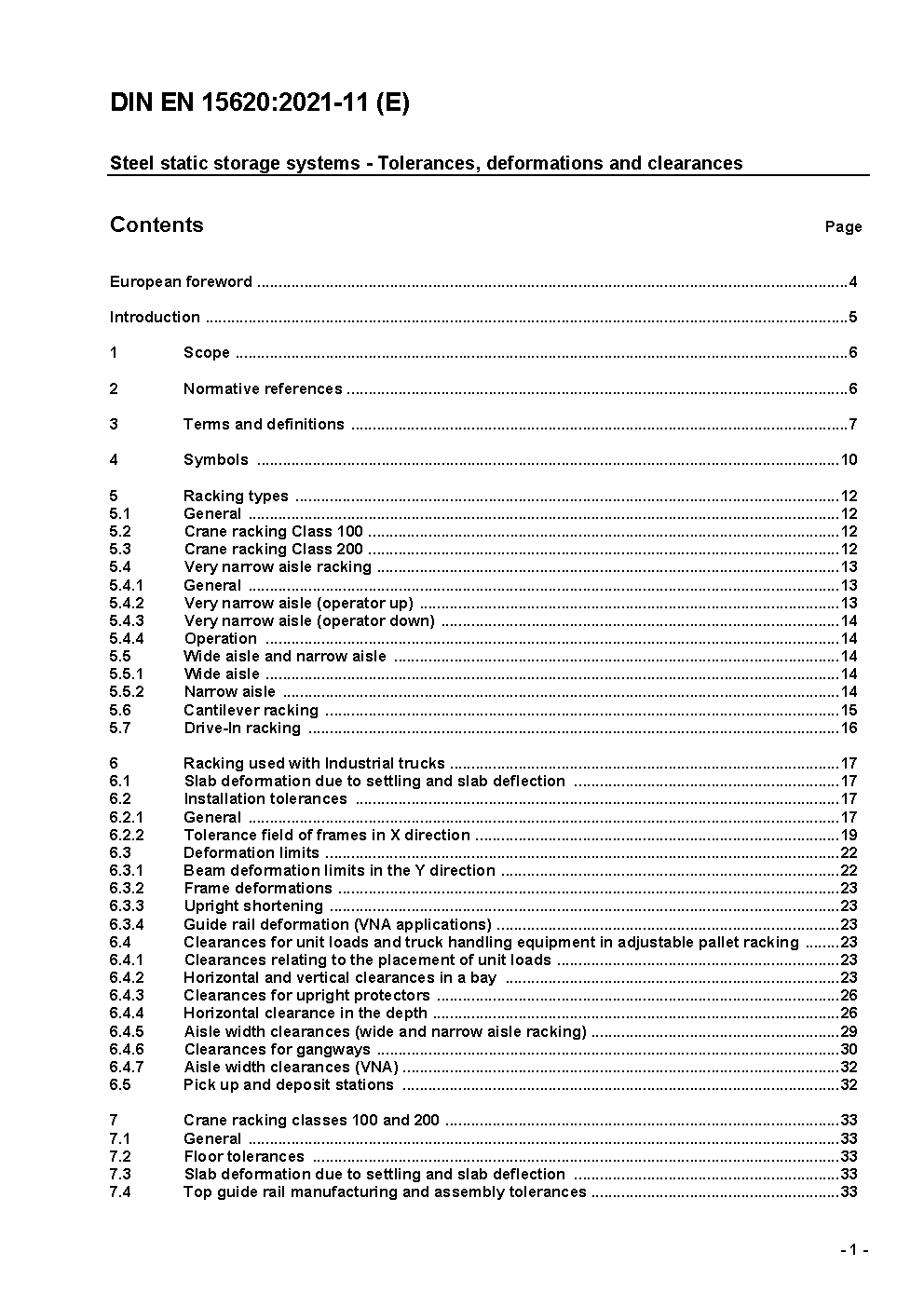 Ortsfeste Regalsysteme aus Stahl - Verstellbare Palettenregale - Toleranzen, Verformungen und Freiräume; Deutsche Fassung prEN 15620:2007
