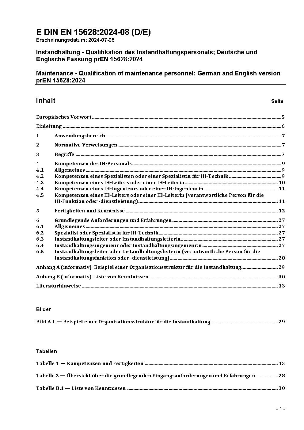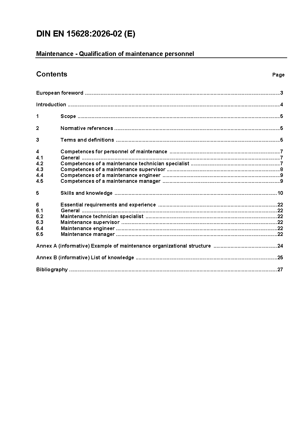 Instandhaltung - Qualifikation des Instandhaltungspersonals; Deutsche Fassung EN 15628:2025