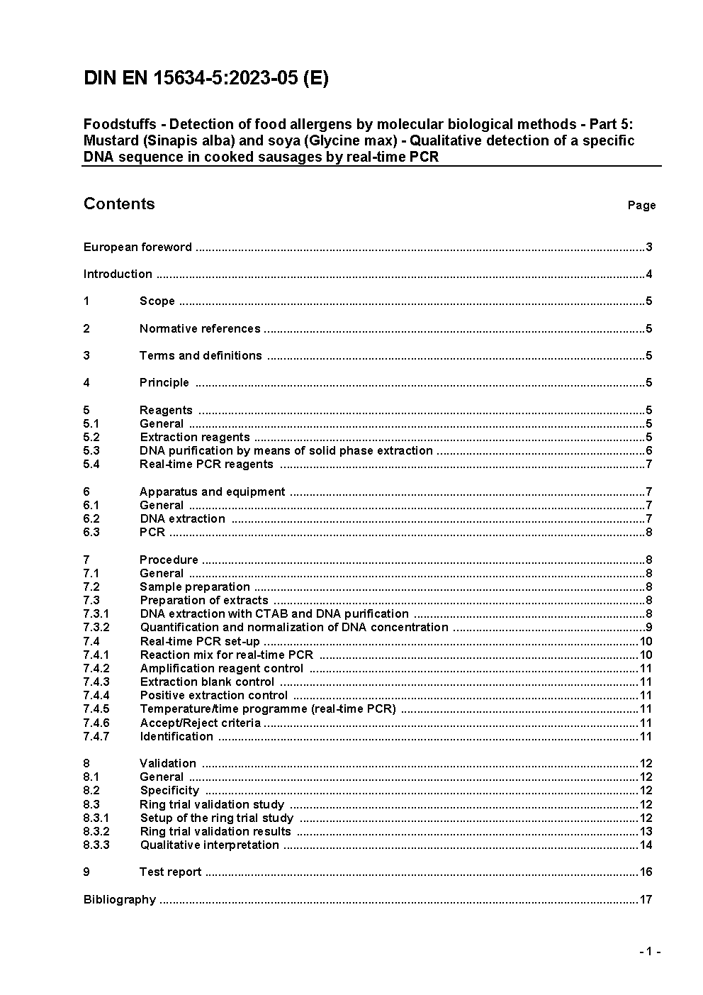 Foodstuffs - Detection of food allergens by molecular biological methods - Part 5: Mustard (Sinapis alba) and soya (Glycine max) - Qualitative detection of a specific DNA sequence in cooked sausages by real-time PCR; German and English version prEN 15634-5:2021