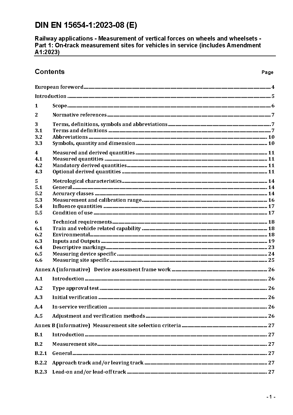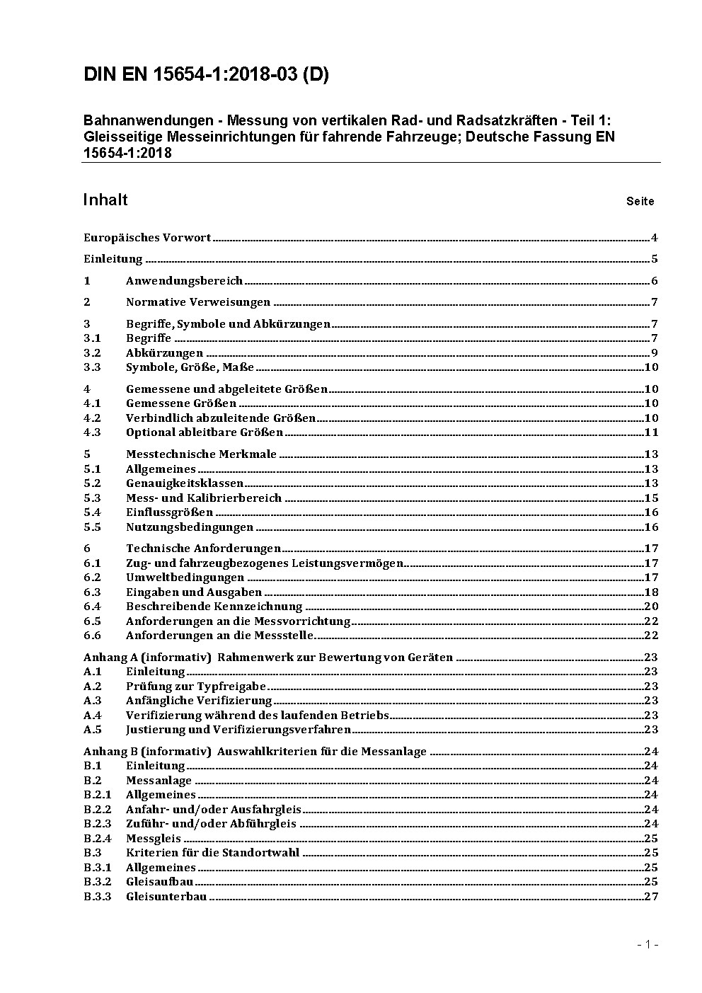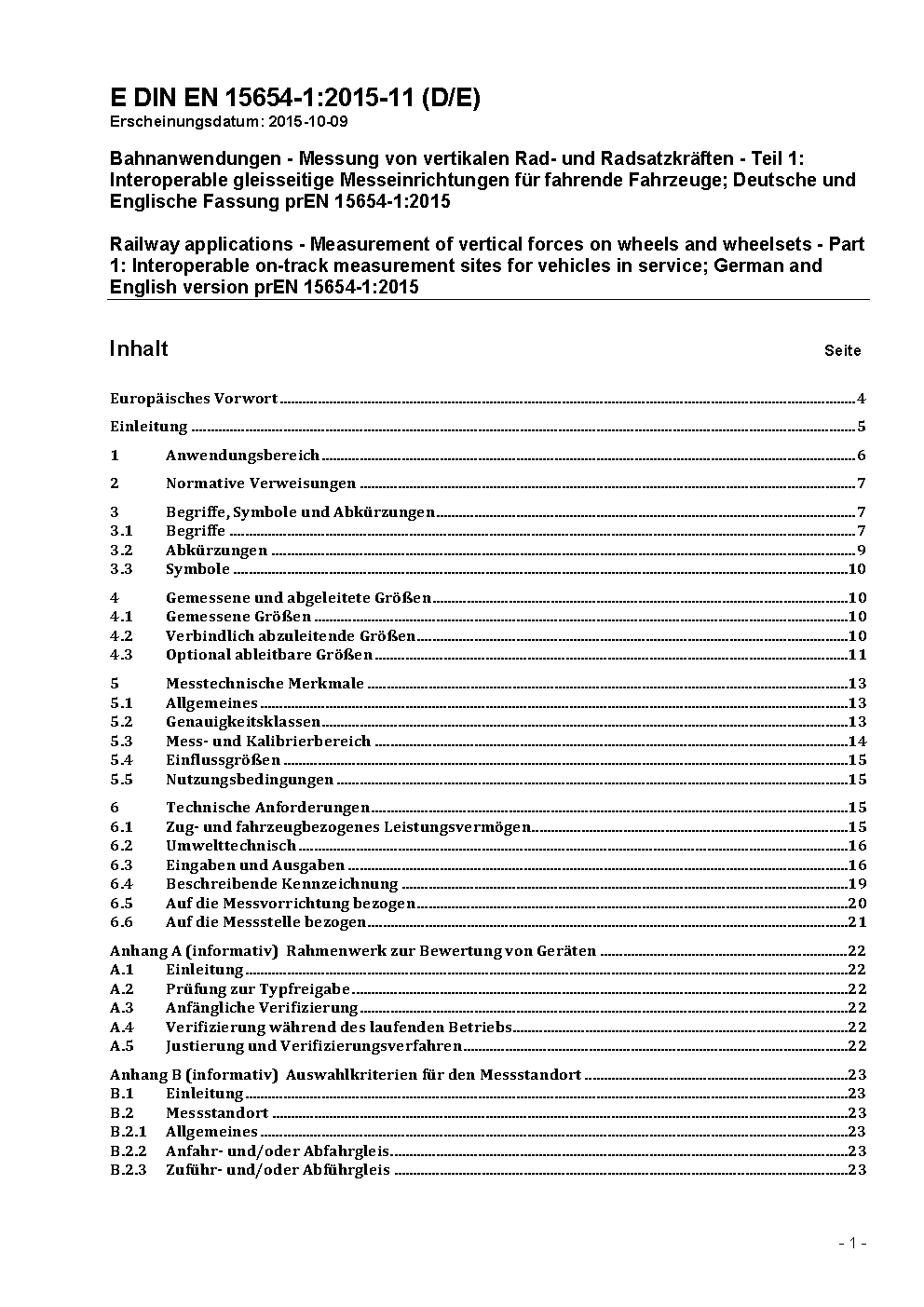 Bahnanwendungen - Vermessung von Rad- und Radsatzlasten - Teil 1: Interoperable Schienenfahrzeuge im Betrieb; Deutsche Fassung prEN 15654-1:2007