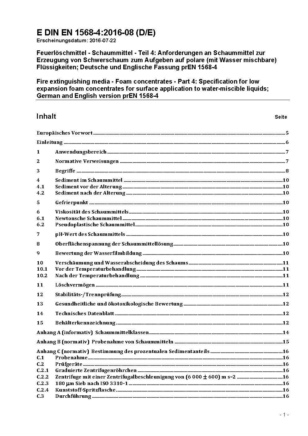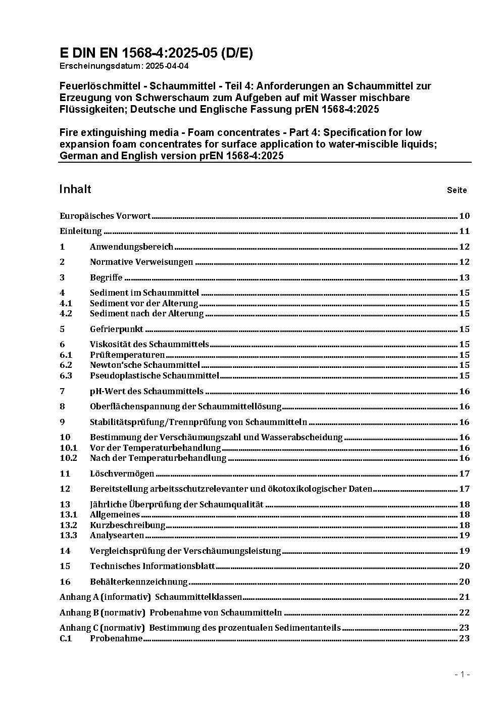 Feuerlöschmittel - Schaummittel - Teil 4: Anforderungen an Schaummittel zur Erzeugung von Schwerschaum zum Aufgeben auf polare Flüssigkeiten