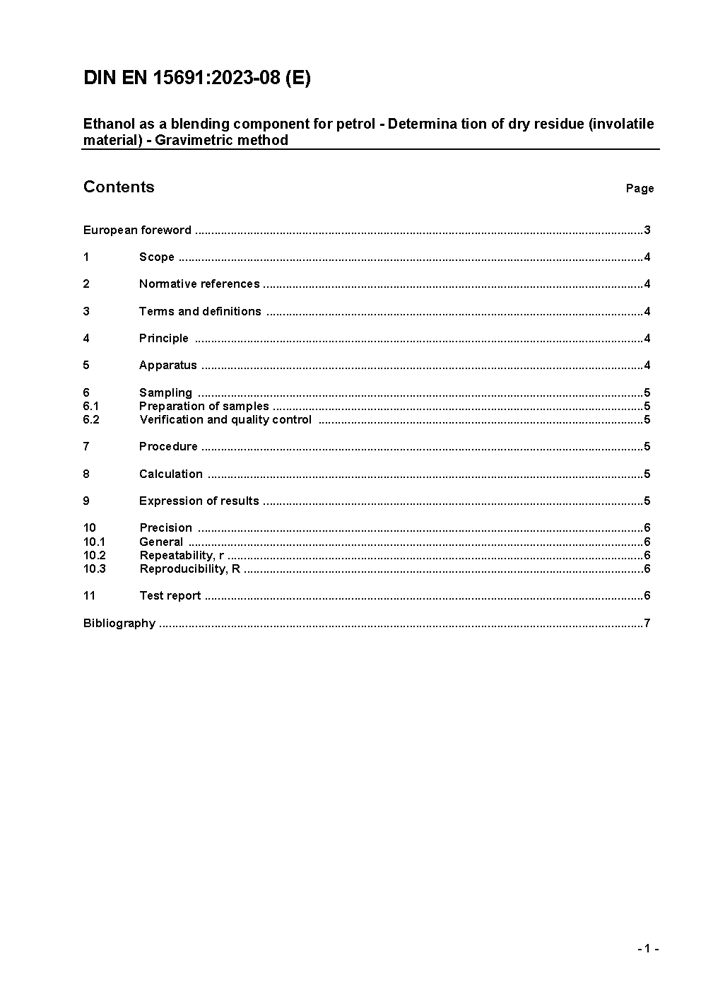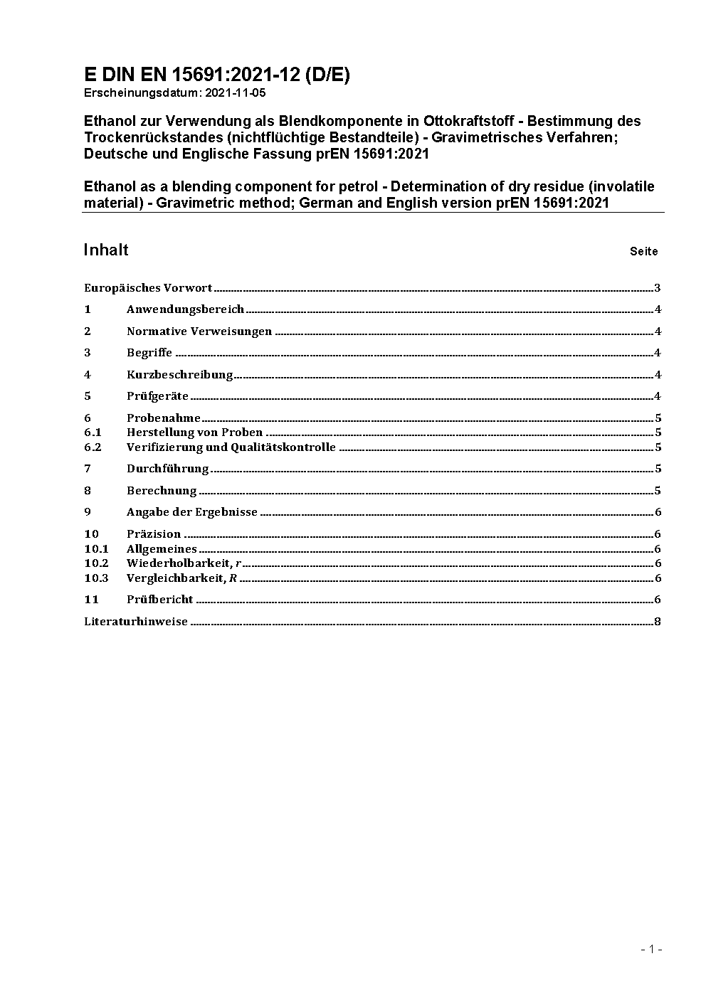 Ethanol as a blending component for petrol - Determination of dry residue (involatile material) - Gravimetric method; German version EN 15691:2023