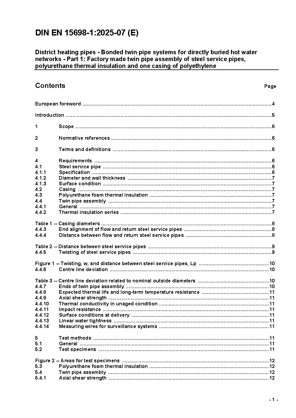 District heating pipes - Preinsulated bonded twin pipe systems for directly buried hot water networks - Part 1: Twin pipe assembly of steel service pipe, polyurethane thermal insulation and outer casing of polyethylene; German and English version EN 15698-1:2009