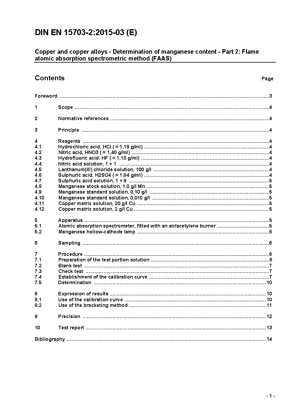 Copper and copper alloys - Determination of manganese content - Part 2: Flame atomic absorption spectrometric method (FAAS); German version EN 15703-2:2014