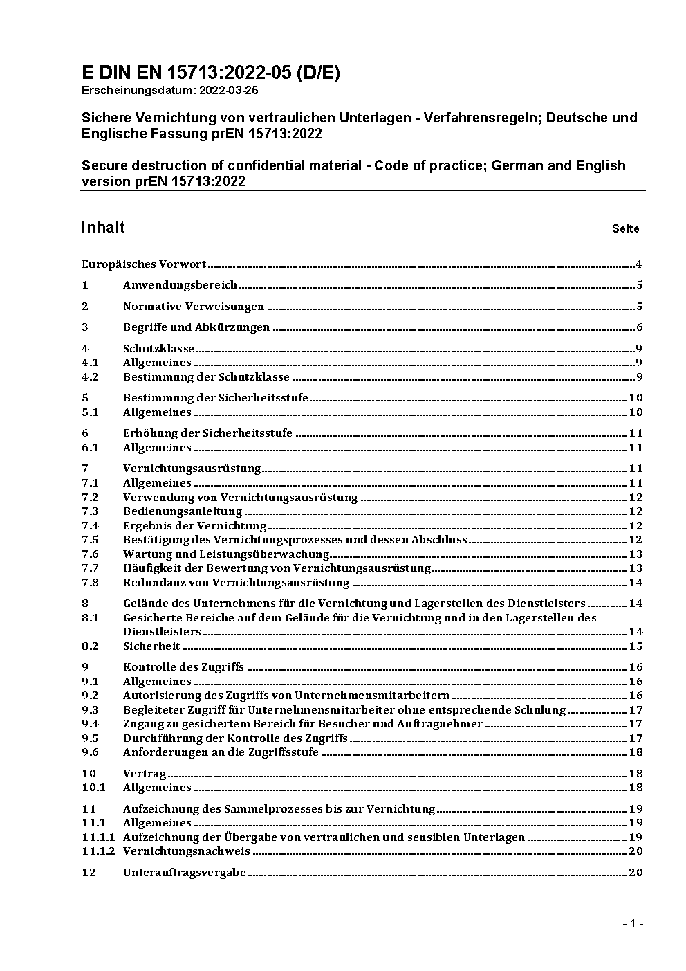 Sichere Vernichtung von vertraulichen Unterlagen - Verfahrensregeln; Deutsche Fassung EN 15713:2023