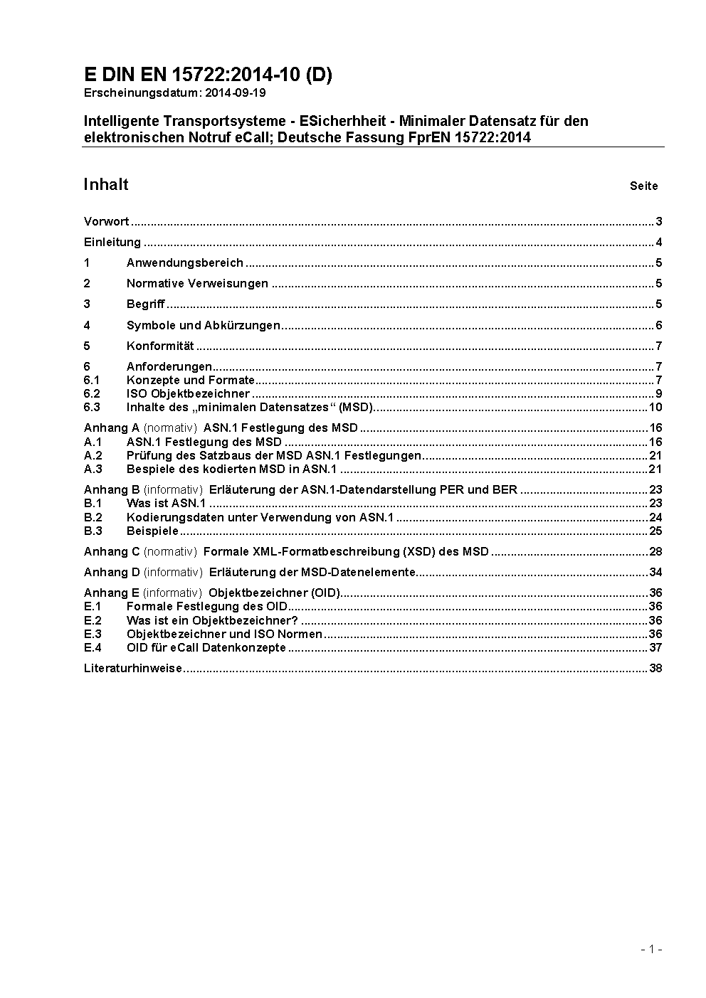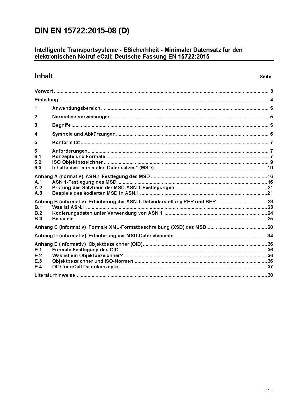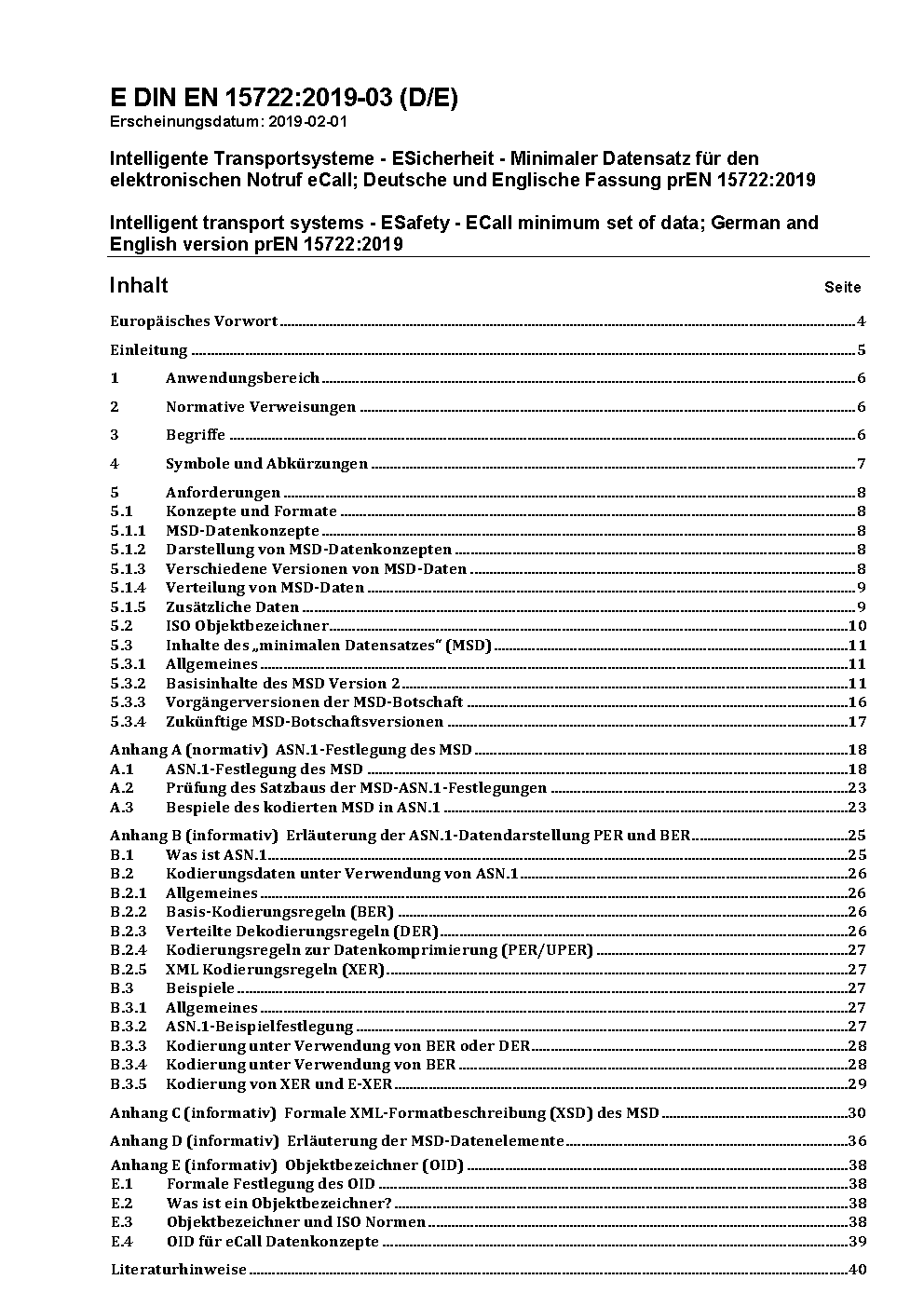 Intelligente Transportsysteme - eSicherheit - Minimaler Datensatz für den elektronischen Notruf eCall; Deutsche Fassung EN 15722:2020