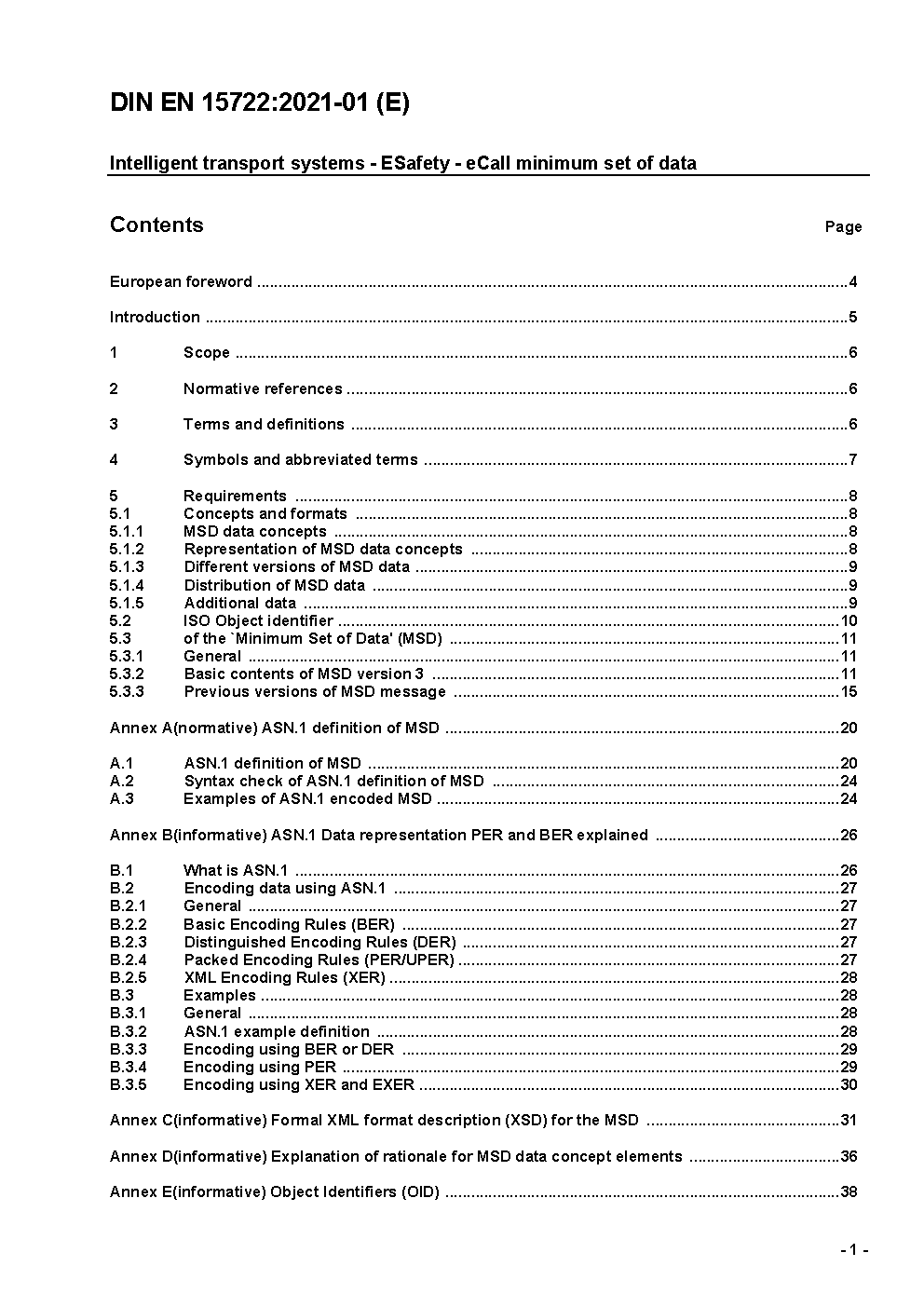 Intelligent transport systems - ESafety - eCall minimum set of data; German version EN 15722:2020