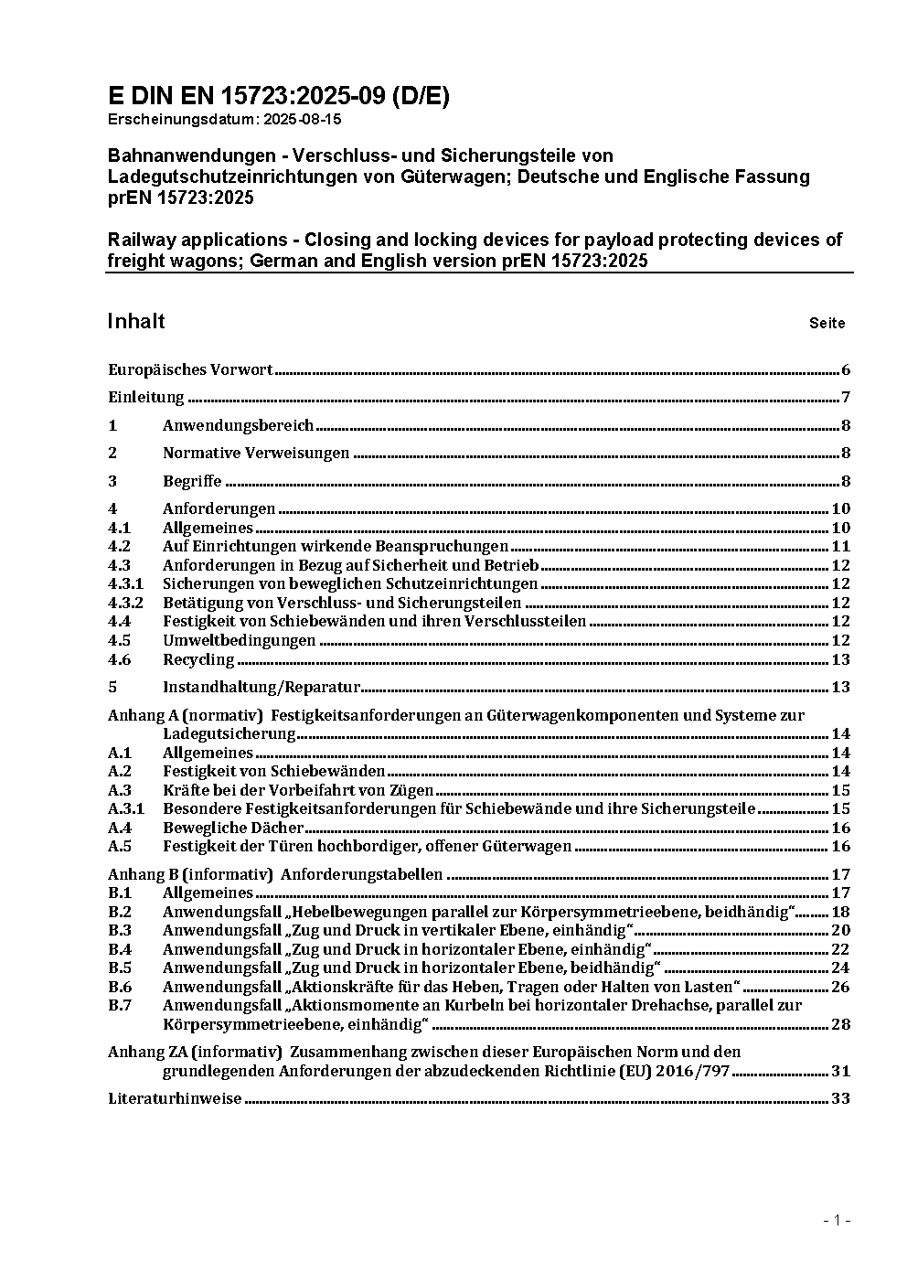 Bahnanwendungen - Verschluss- und Sicherungsteile von Ladegutschutzeinrichtungen gegen Umwelteinflüsse - Anforderungen an Festigkeit, Bedienbarkeit, Kennzeichnung, Instandhaltung, Entsorgung; Deutsche Fassung EN 15723:2010