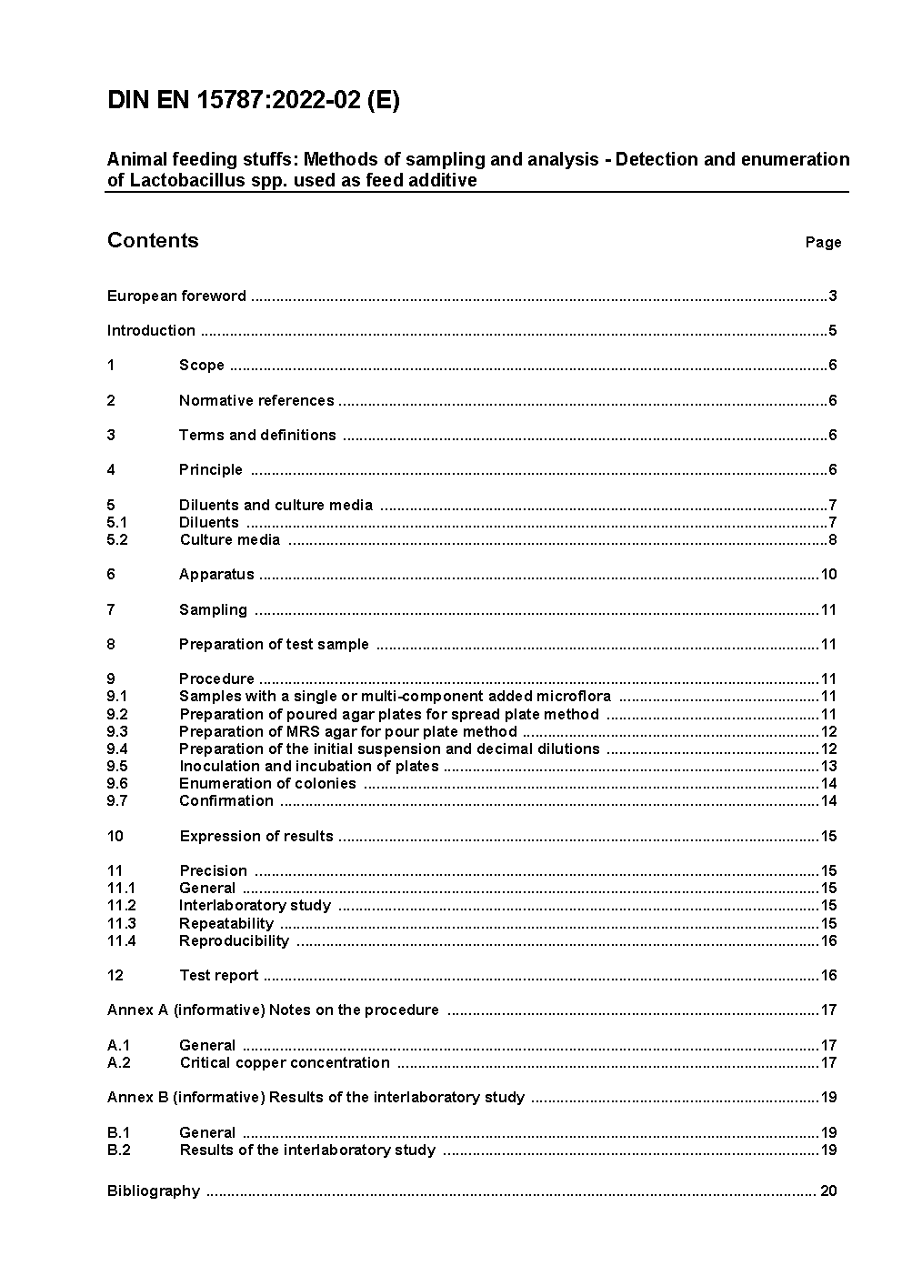 Animal feeding stuffs - Isolation and enumeration of Lactobacillus spp; German version prEN 15787:2008