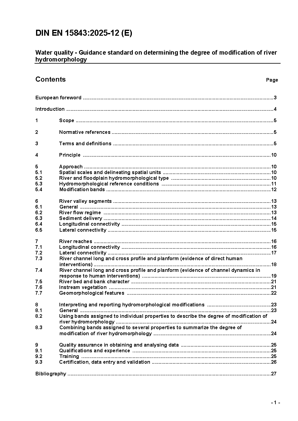 Water quality - Guidance standard on determining the degree of modification of river hydromorphology; German version EN 15843:2010