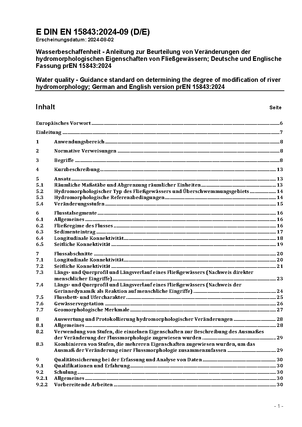 Wasserbeschaffenheit - Anleitung zur Beurteilung von Veränderungen der hydromorphologischen Eigenschaften von Fließgewässern; Deutsche Fassung EN 15843:2010