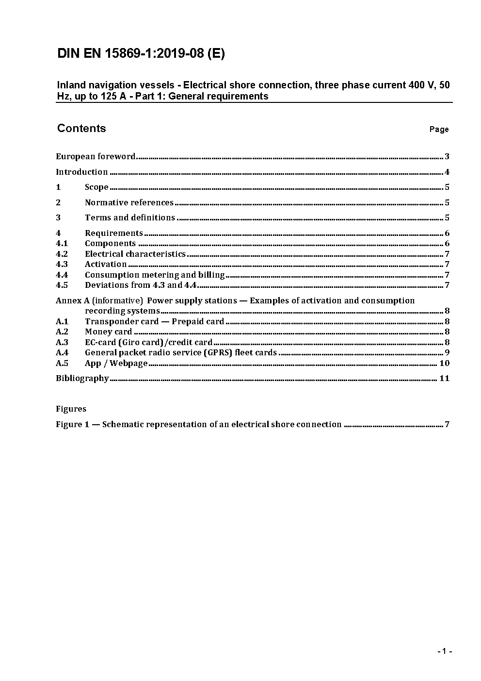 Inland navigation vessels - Electrical shore connection, three phase current 400 V, up to 63 A, 50 Hz - Part 1: General requirements; German version EN 15869-1:2010