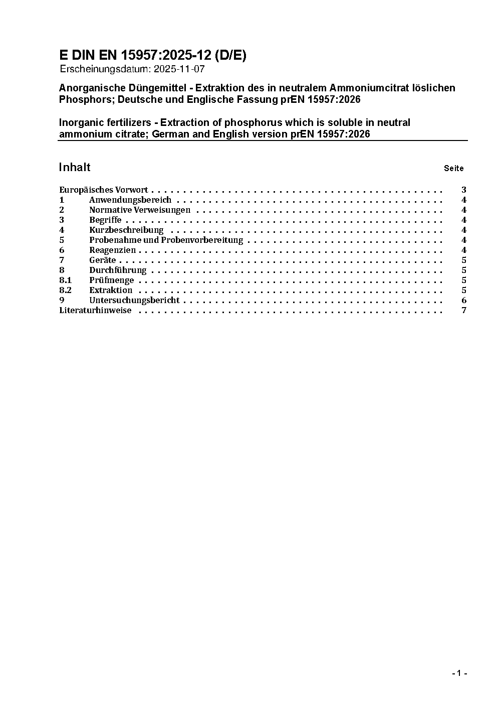 Düngemittel - Extraktion des in neutralem Ammoniumcitrat löslichen Phosphors; Deutsche Fassung FprEN 15957:2011