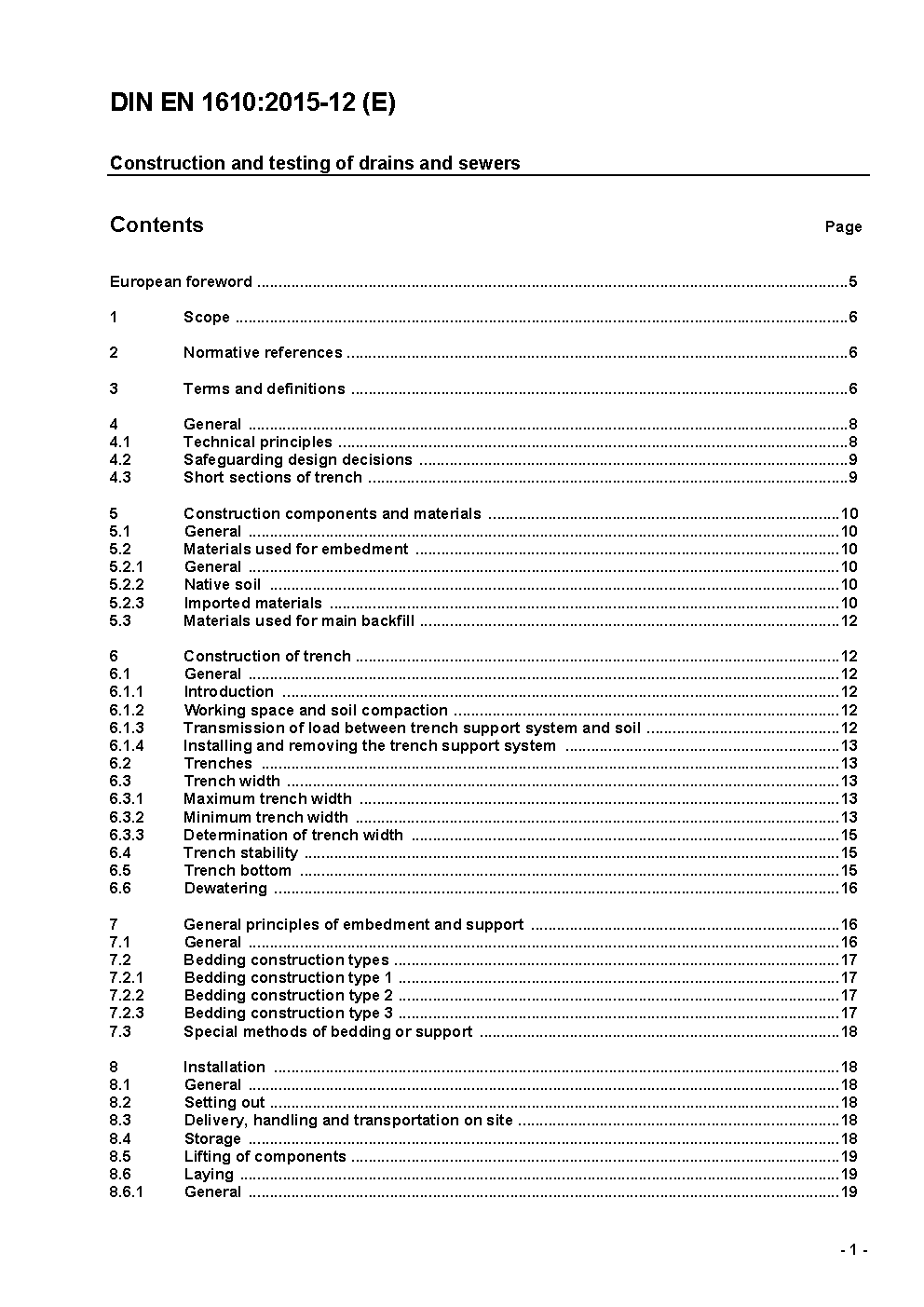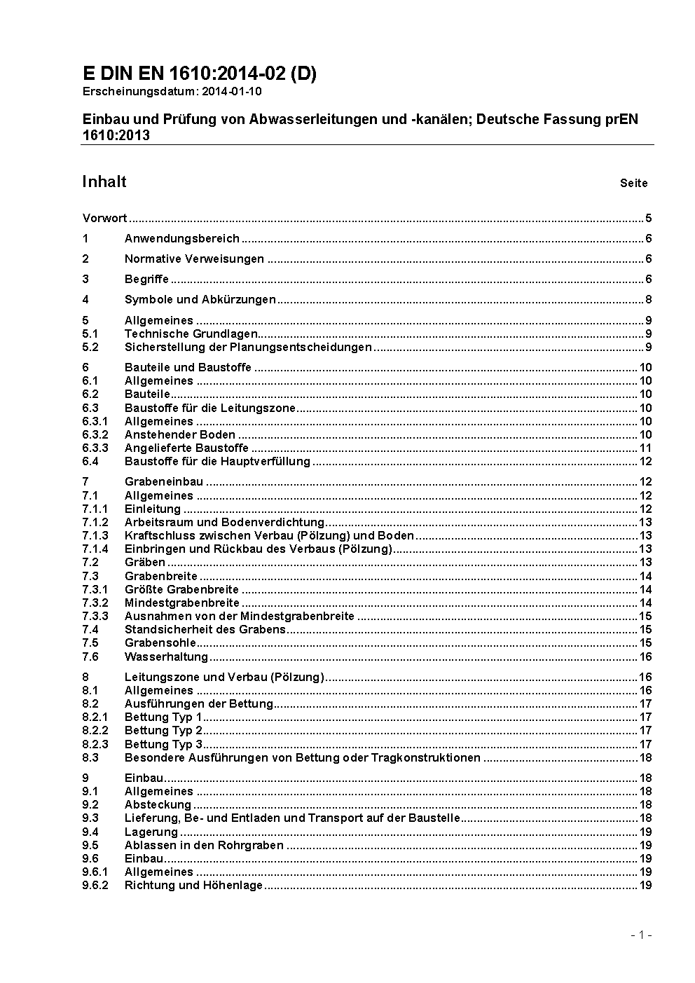 Construction and testing of drains and sewers; German version EN 1610:1997