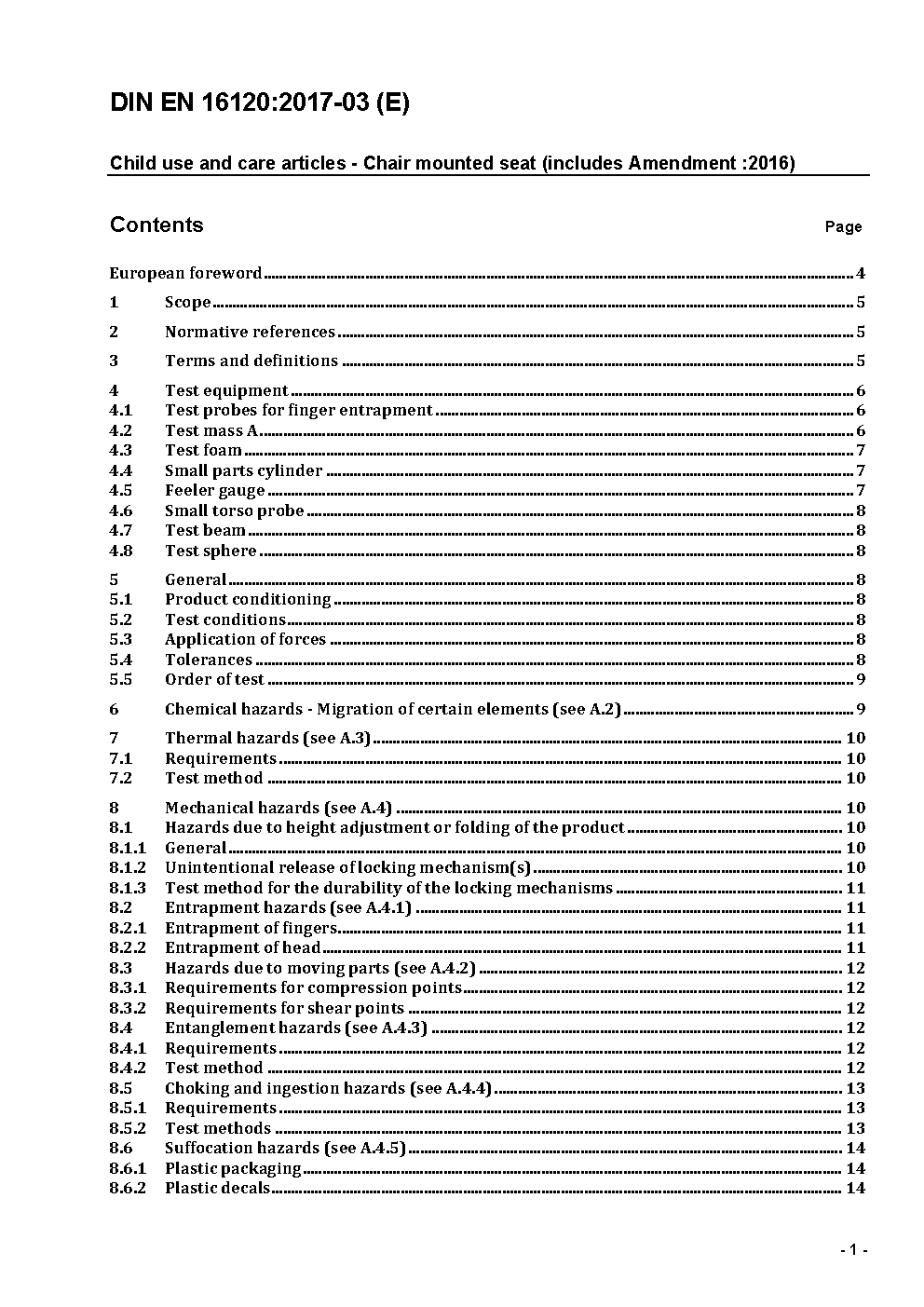 Child use and care articles - Chair mounted seat; German version EN 16120:2012+A1:2014