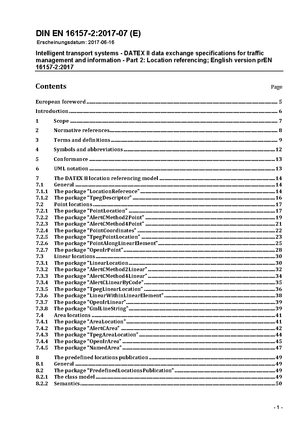 Intelligent transport systems - DATEX II data exchange specifications for traffic management and information - Part 2: Location referencing; English version EN 16157-2:2019