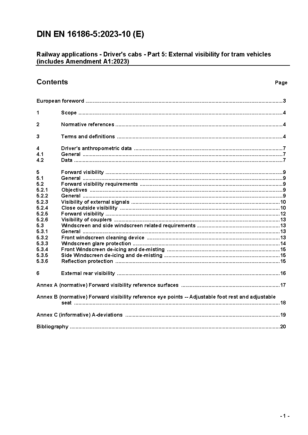 Railway applications - Driver's cabs - Part 5: External visibility for tram vehicles; German version EN 16186-5:2021