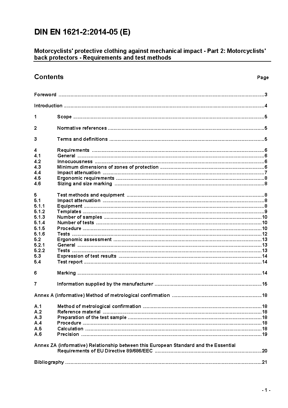 Motorradfahrer-Schutzkleidung gegen mechanische Belastung - Teil 2: Rückenprotektoren; Anforderungen und Prüfverfahren; Deutsche Fassung EN 1621-2:2003