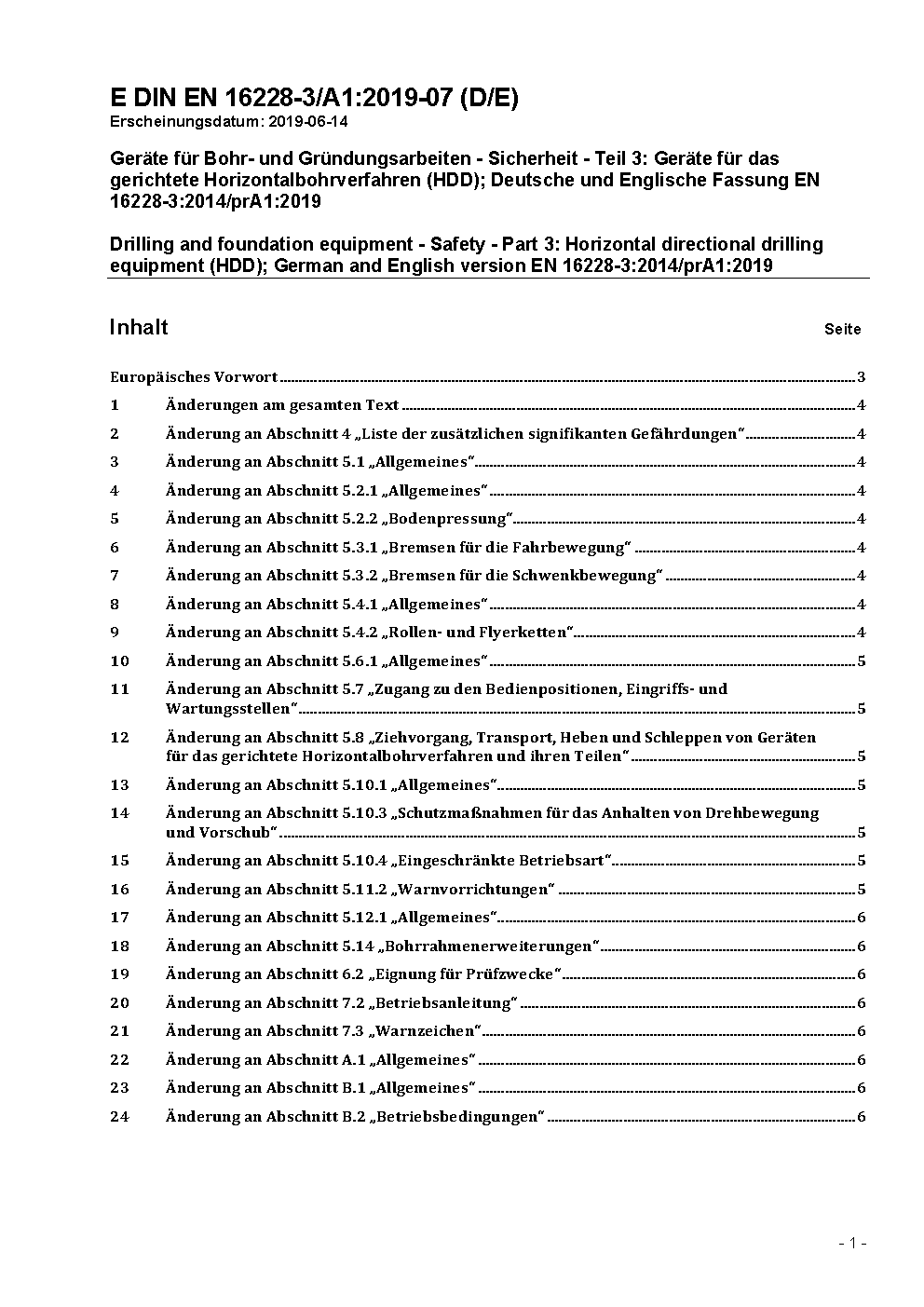 Geräte für Bohr- und Gründungsarbeiten - Sicherheit - Teil 3: Geräte für das gerichtete Horizontalbohrverfahren (HDD); Deutsche Fassung EN 16228-3:2014