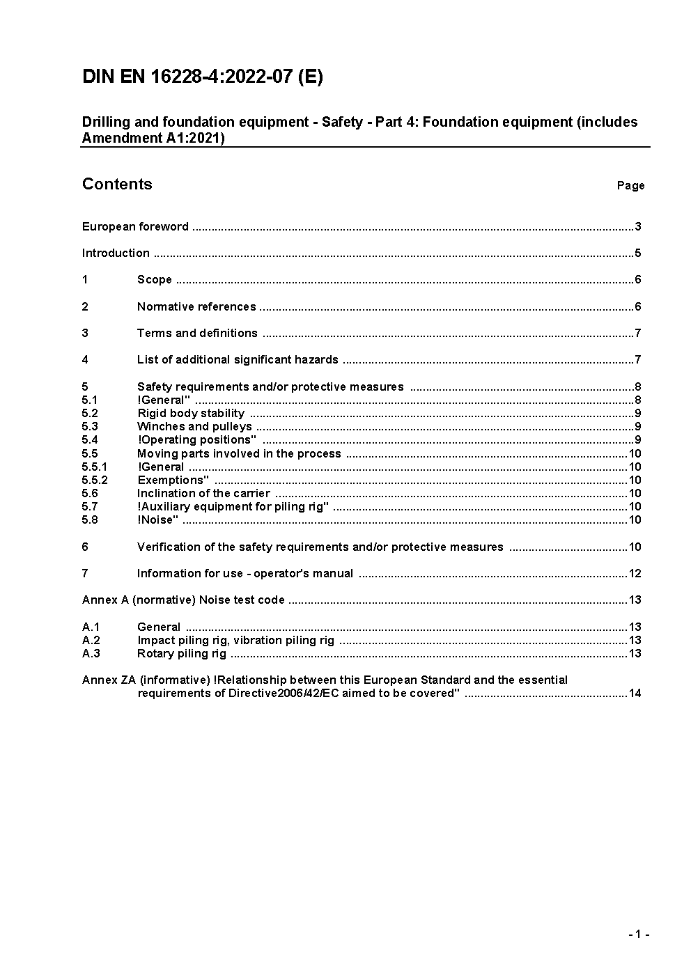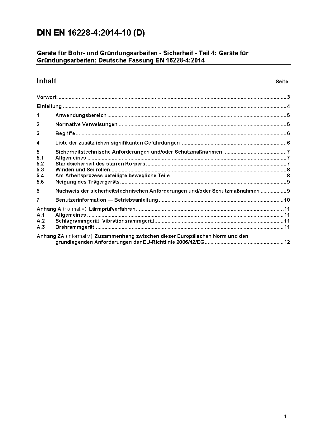 Geräte für Bohr- und Gründungsarbeiten - Sicherheit - Teil 4: Geräte für Gründungsarbeiten; Deutsche Fassung EN 16228-4:2014