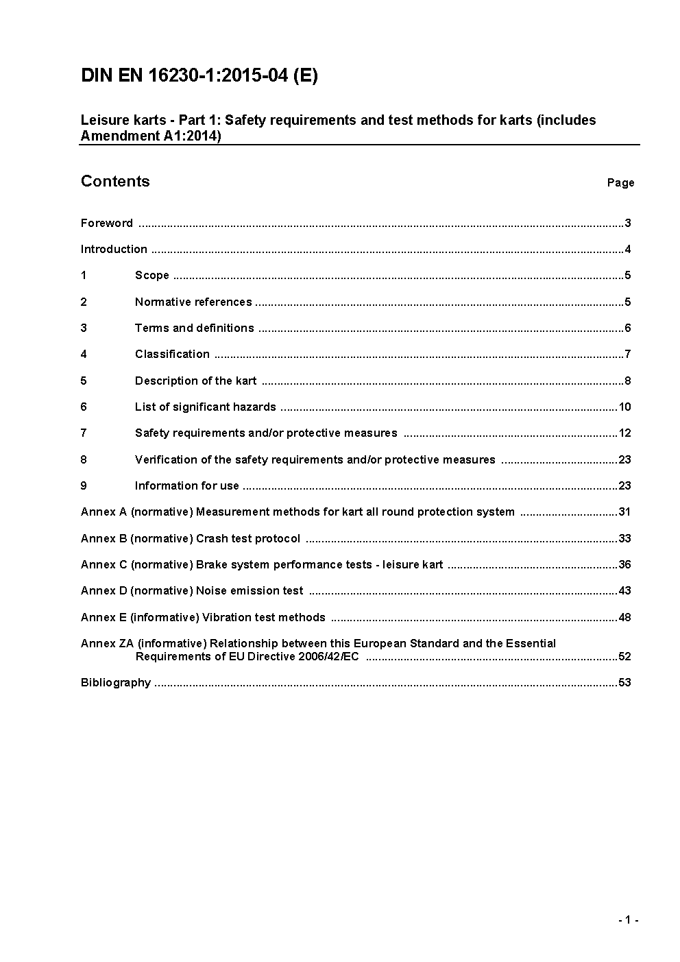 Leisure karts - Part 1: Safety requirements and test methods for karts; German version EN 16230-1:2013.