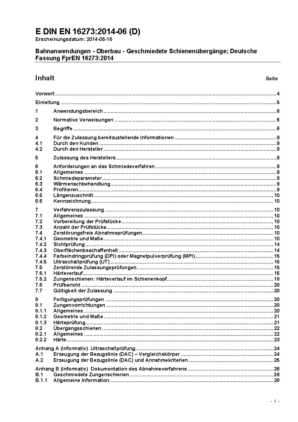 Bahnanwendungen - Oberbau - Geschmiedete Schienenübergänge; Deutsche Fassung prEN 16273:2011