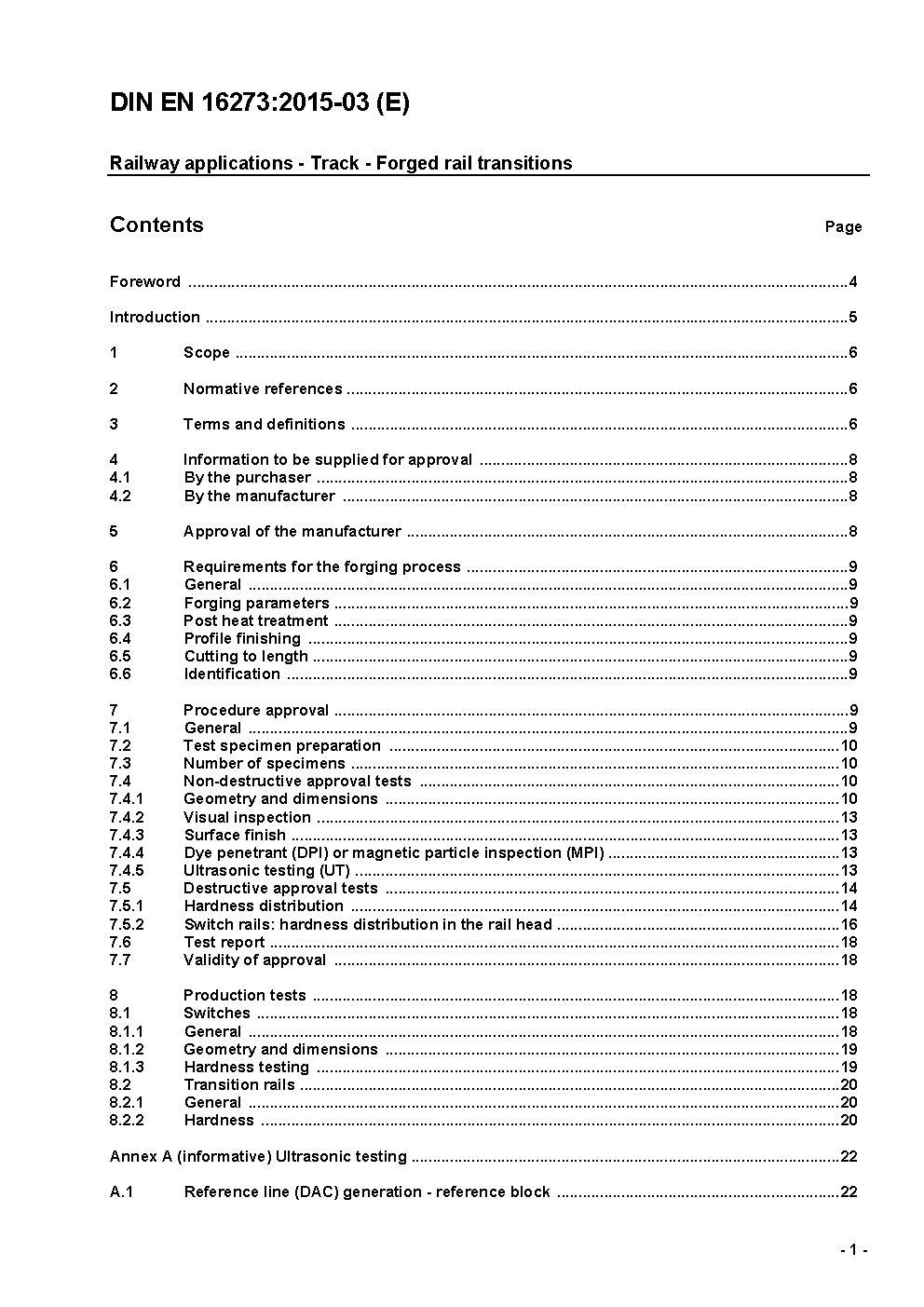 Railway applications - Track - Forged rail transitions; German version prEN 16273:2011
