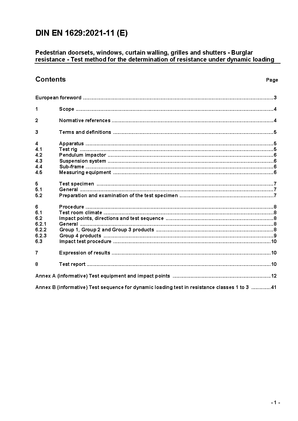 Pedestrian doorsets, windows, curtain walling, grilles and shutters - Burglar resistance - Test method for the determination of resistance under dynamic loading; German version EN 1629:2011