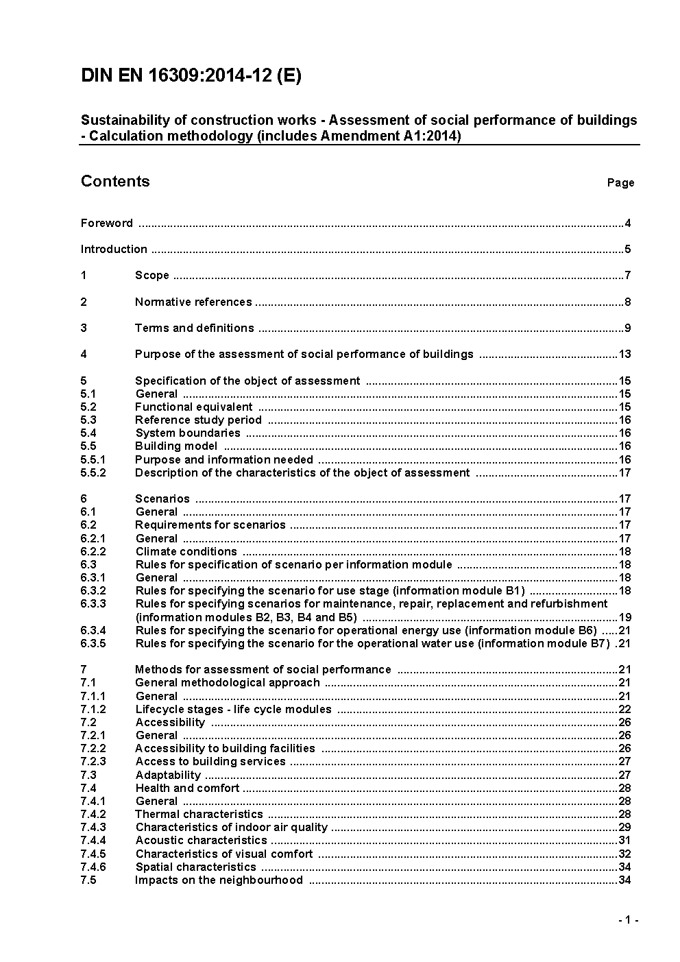Nachhaltigkeit von Bauwerken - Bewertung der sozialen Qualität von Gebäuden - Berechnungsmethoden; Deutsche Fassung EN 16309:2014+A1:2014