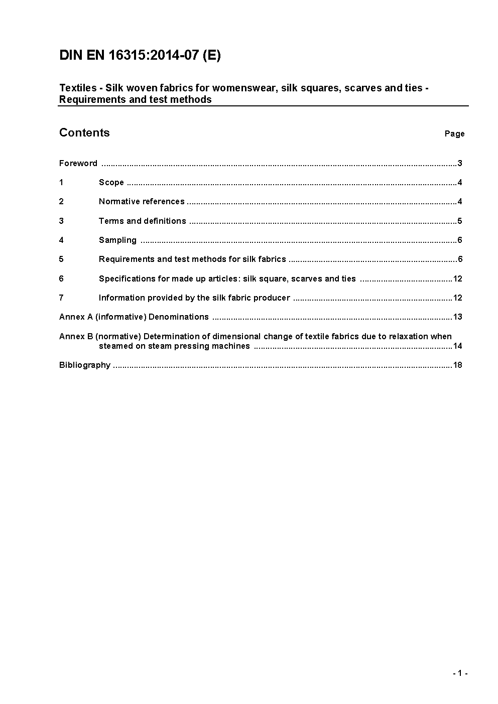 Textilien und textile Erzeugnisse - Gewebe aus Seide für Damenbekleidung, Tücher, Schals und Krawatten - Anforderungen und Prüfverfahren; Deutsche Fassung prEN 16315:2011