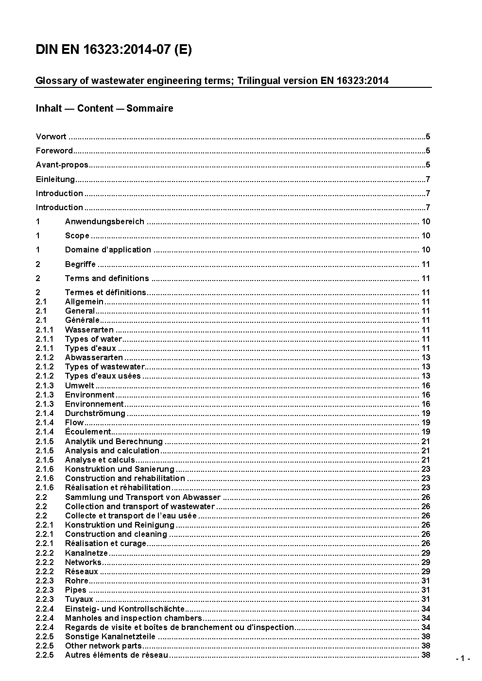 Wörterbuch für Begriffe der Abwassertechnik; Dreisprachige Fassung prEN 16323:2011