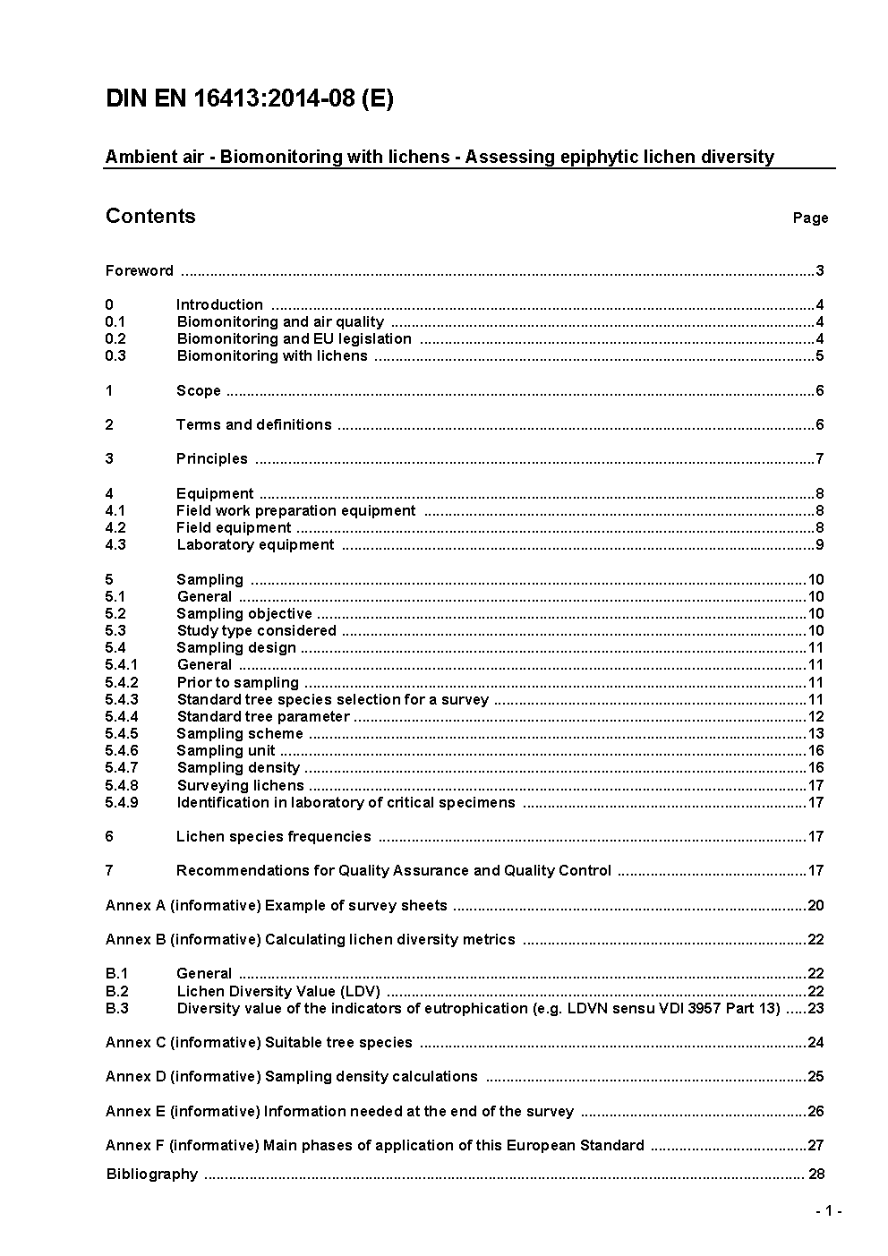 Air quality - Biomonitoring with lichens - Assessing epiphytic lichen diversity; German version prEN 16413:2012