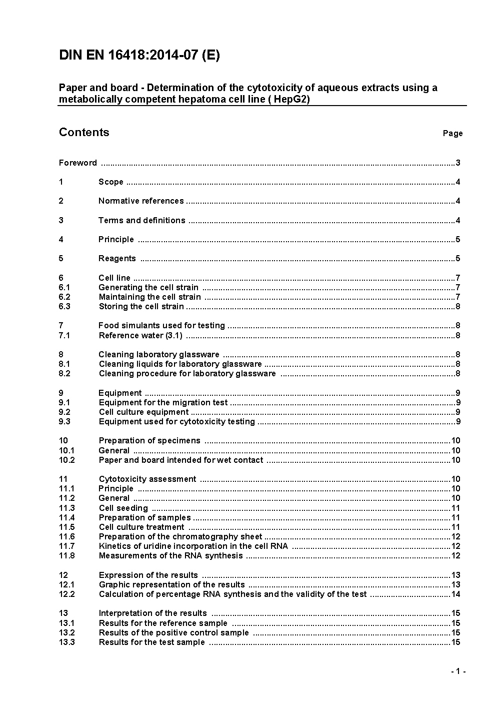 Paper and board - Determination of the cytotoxicity of aqueous extracts using a metabolically competent hepatoma cell line (HepG2); German version prEN 16418:2012