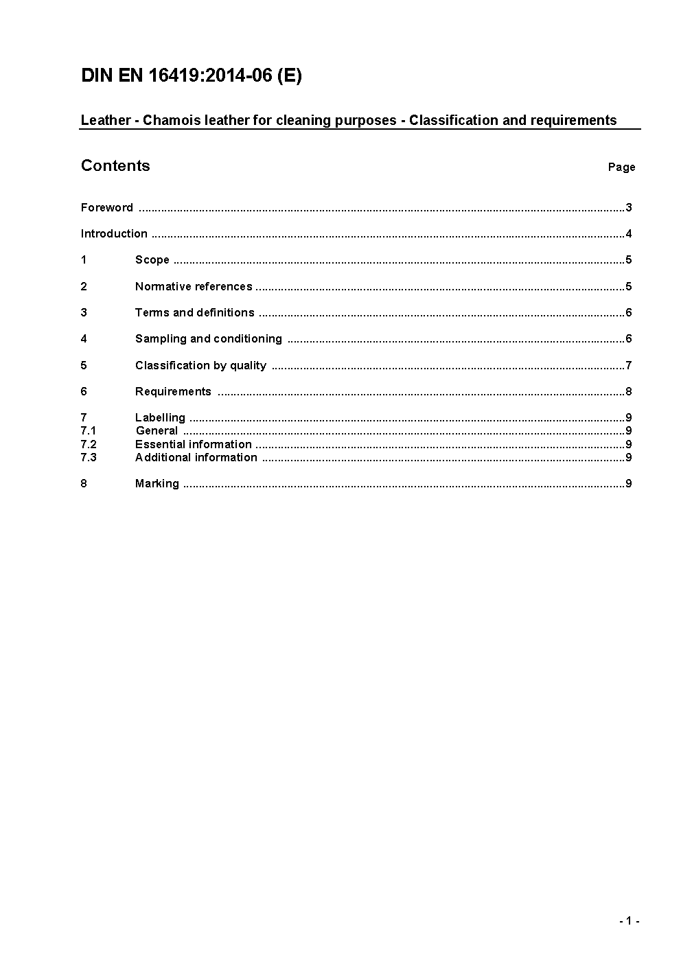 Leather - Chamois leather - Classification and requirements; German version prEN 16419:2012