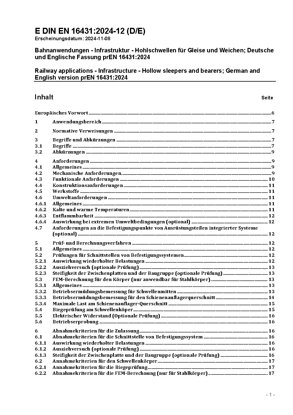 Bahnanwendungen - Oberbau - Hohlwand-Gleis- und Weichenschwellen; Deutsche Fassung prEN 16431:2012