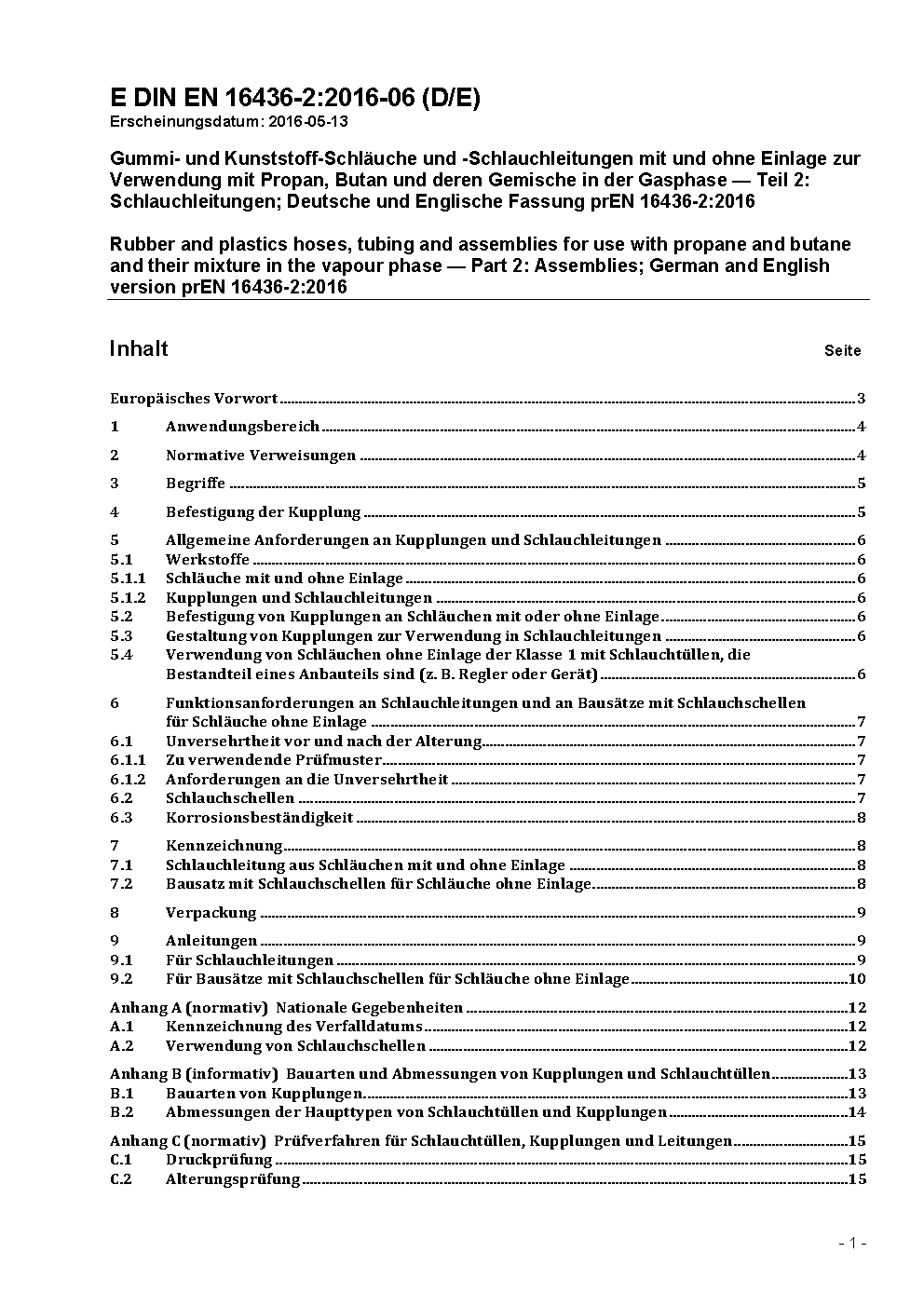 Gummi- und Kunststoff-Schläuche und -Schlauchleitungen mit und ohne Einlage zur Verwendung mit Propan, Butan und deren Gemische in der Gasphase - Teil 2: Schlauchleitungen; Deutsche Fassung EN 16436-2:2018 / Achtung: Diese Norm ist Bestandteil des DVGW Regelwerks.