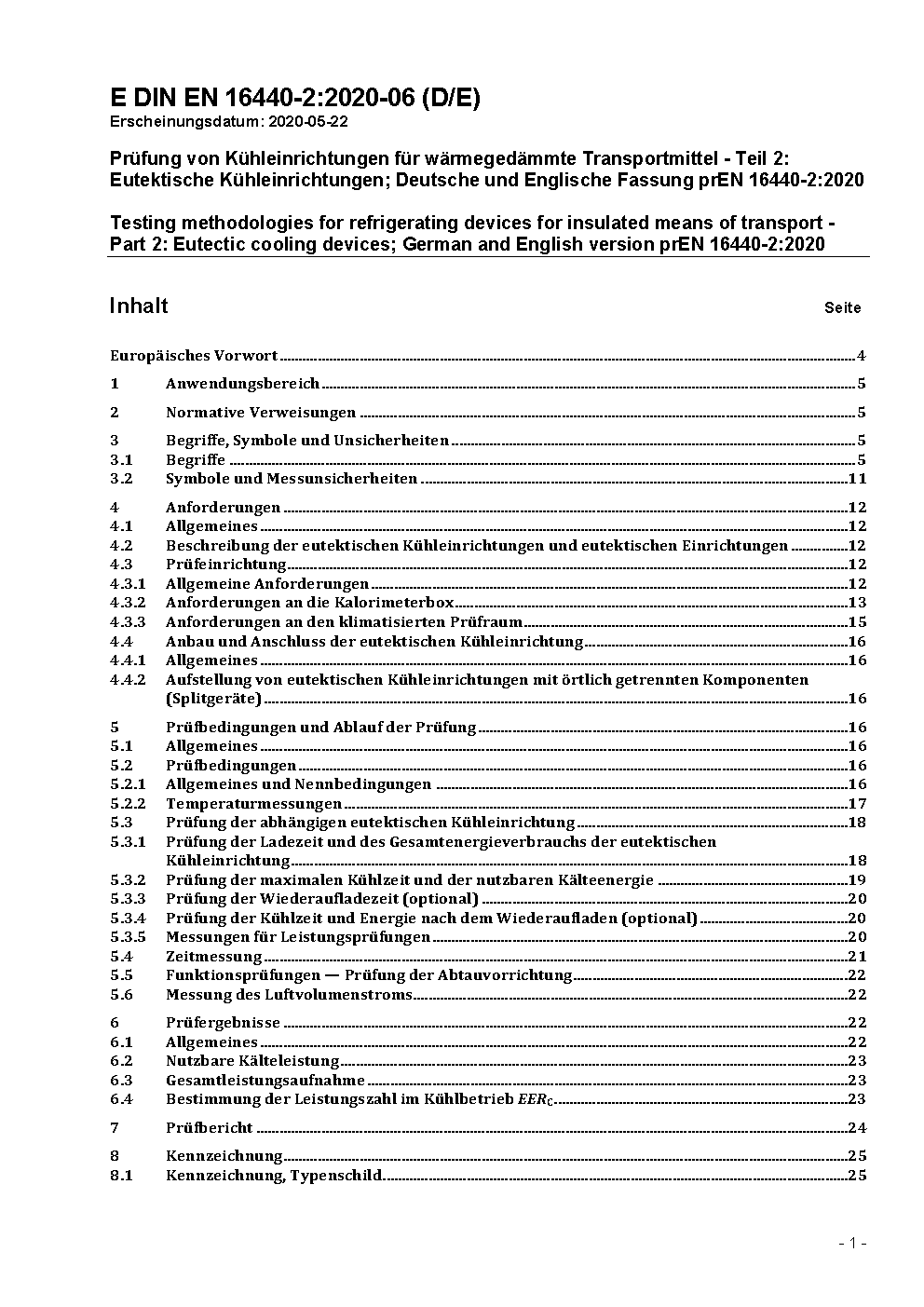 Prüfung von Kühleinrichtungen für wärmegedämmte Transportmittel - Teil 2: Eutektische Kühleinrichtungen; Deutsche Fassung EN 16440-2:2023