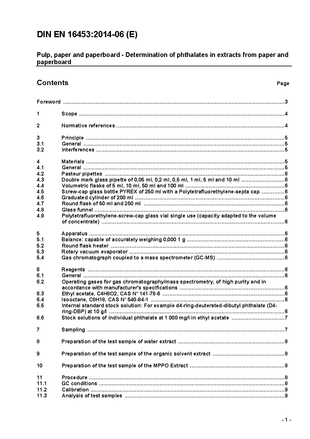 Pulp, paper and paperboard - Determination of phthalates in extracts from paper and paperboard; German version prEN 16453:2012