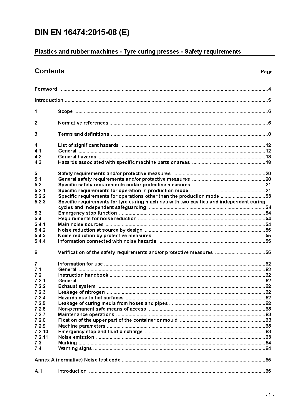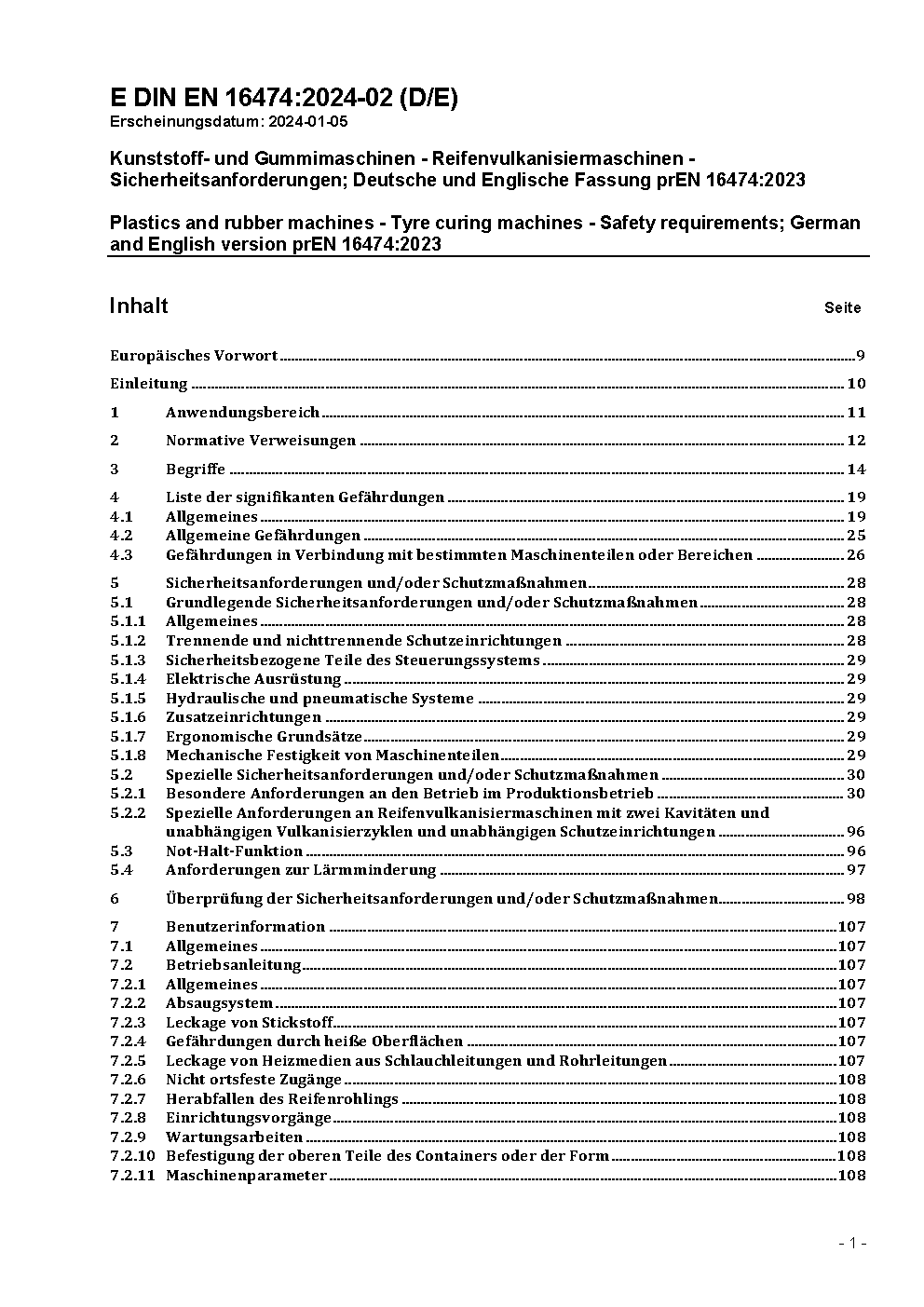 Plastics and rubber machines - Tyre curing presses - Safety requirements; German version prEN 16474:2012