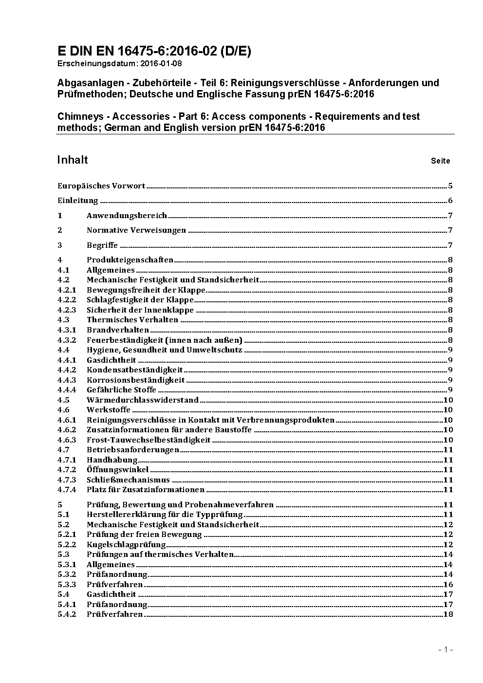 Chimneys - Accessories - Part 6: Access components - Requirements and test methods; German and English version prEN 16475-6:2016