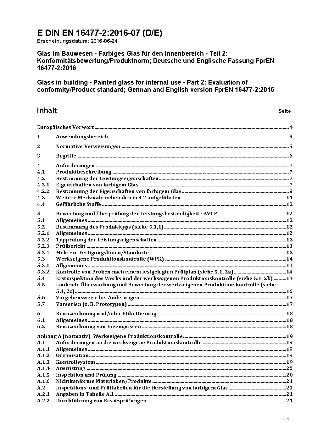 Glass in building - Painted glass for internal use - Part 2: Evaluation of conformity; German version prEN 16477-2:2012